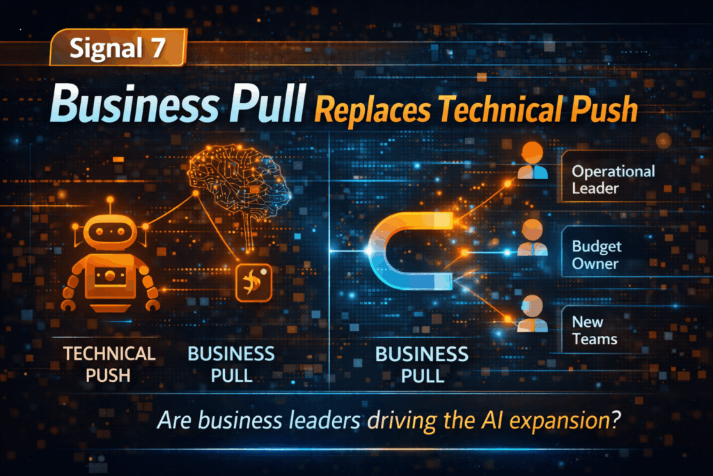 Perhaps the most telling early ROI signal is who is driving expansion. When scaling is driven by business demand rather than technical advocacy, ROI is likely to materialize. Signs of business pull include: